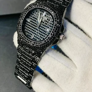 - • Blacked Iced Out Chain Watch for Men’s Fashion.